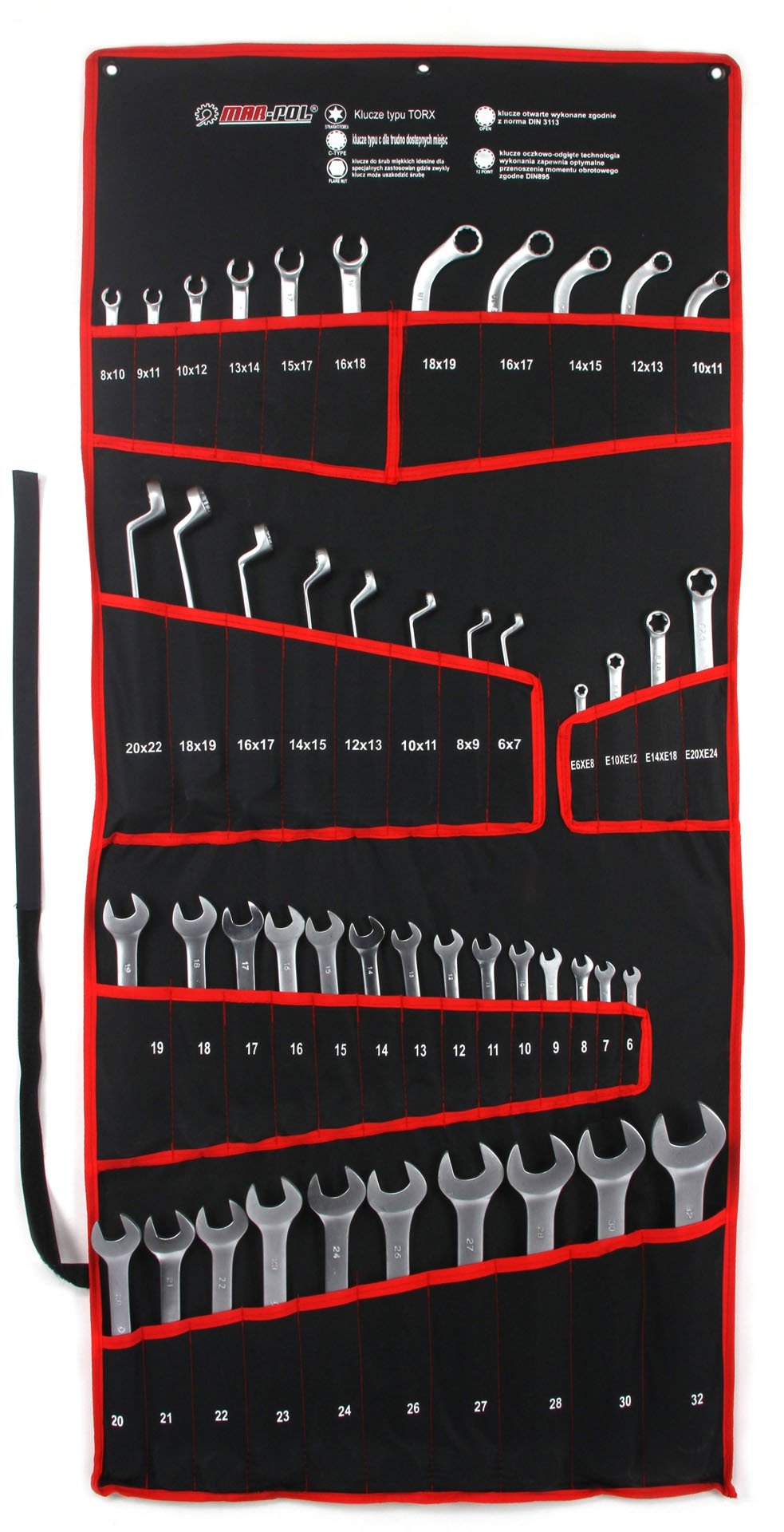 - Комбинирани гаечни ключове: 6, 7, 8, 9, 10, 11, 12, 13, 14, 15, 16, 17, 18, 19, 20, 21, 22, 23, 24, 26, 27, 28, 30, 32 мм