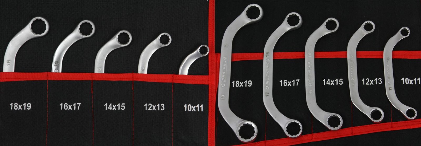 - Гаечен ключ тип полумесец : 10 x 11, 12 x 13, 14 x 15, 16 x 17, 18 x 19 мм
