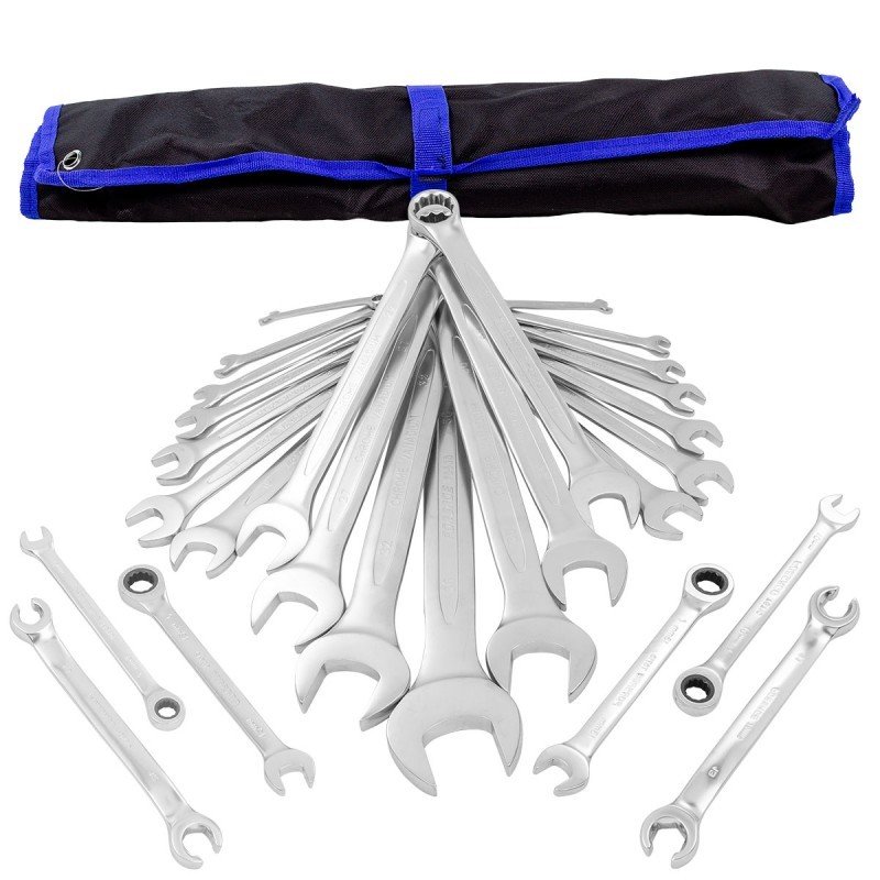 • Професионален комплект  ключове с размери от 6 до 32 мм: 6, 7, 8, 9, 10, 11, 12, 13, 14, 15, 16, 17, 18, 19, 20, 21, 22, 23, 24, 27, 30, 32 мм