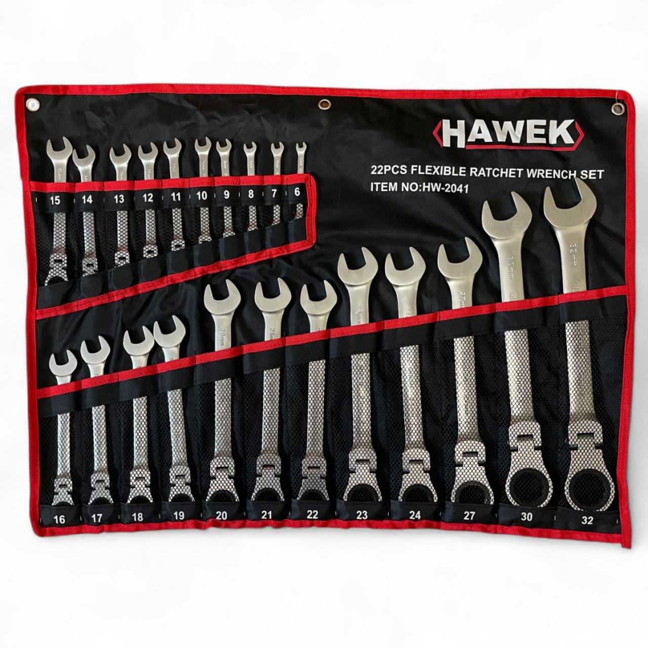 ЗВЕЗДОГАЕЧНИ ТРЕСЧОТНИ КЛЮЧОВЕ С ЧУПЕЩО РАМО 6-32 ММ 22 ЧАСТИ HAWEK