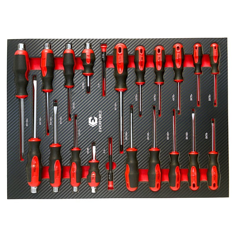 Професионален шкаф с метален плот, със 7 чекмеджета – пълни с инструменти EverForce