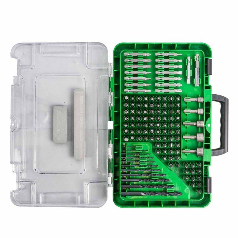 Практичен комплект накрайници, битове и свредла на RockForce – модел RF-10120 с магнитен държач , състоящ се от 120 части, в удобен пластмасов куфар за пренасяне.