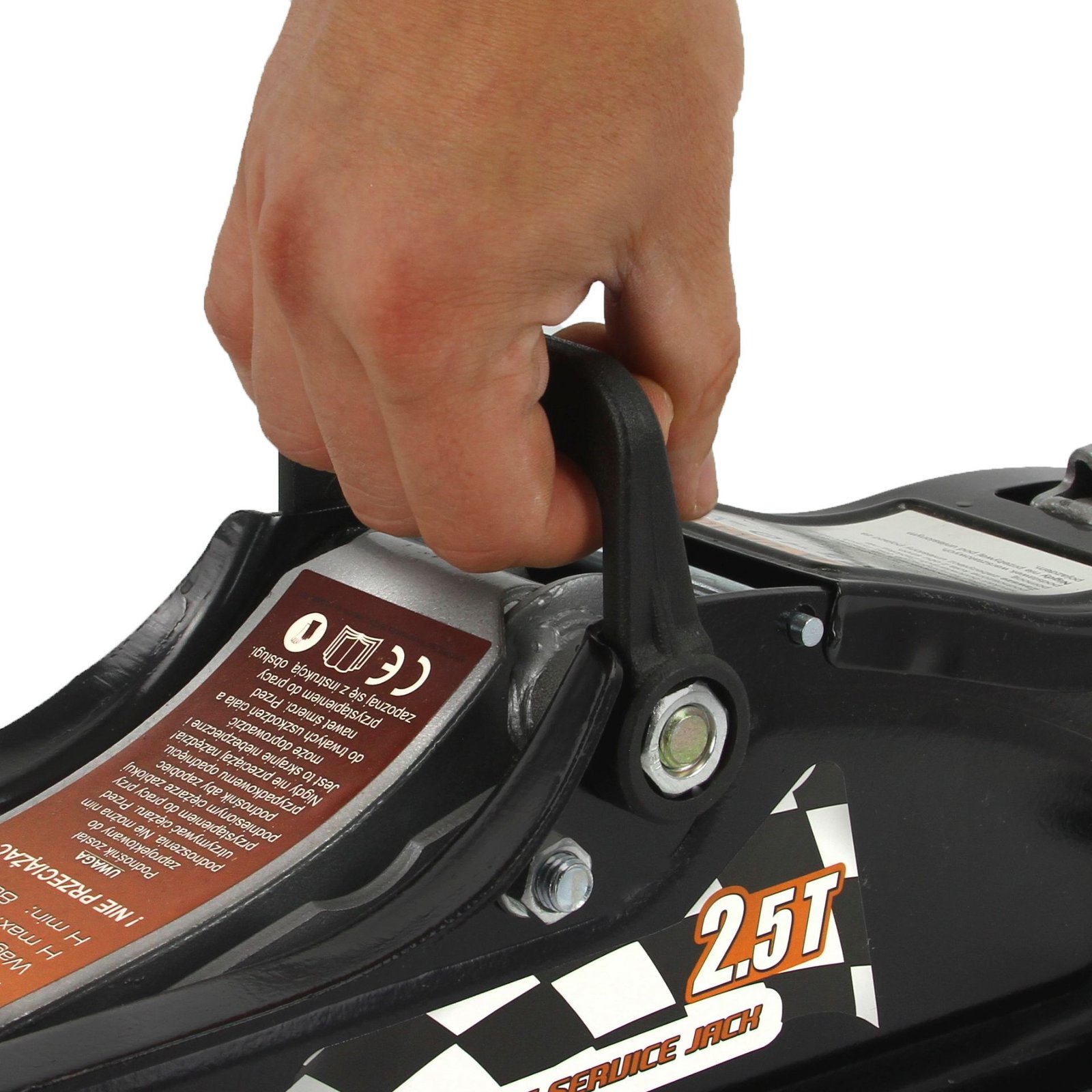 Крикът е снабден с дръжка, която улеснява пренасянето на крика, като елиминира риска от случайно изпускане и улеснява маневрирането под автомобила.
