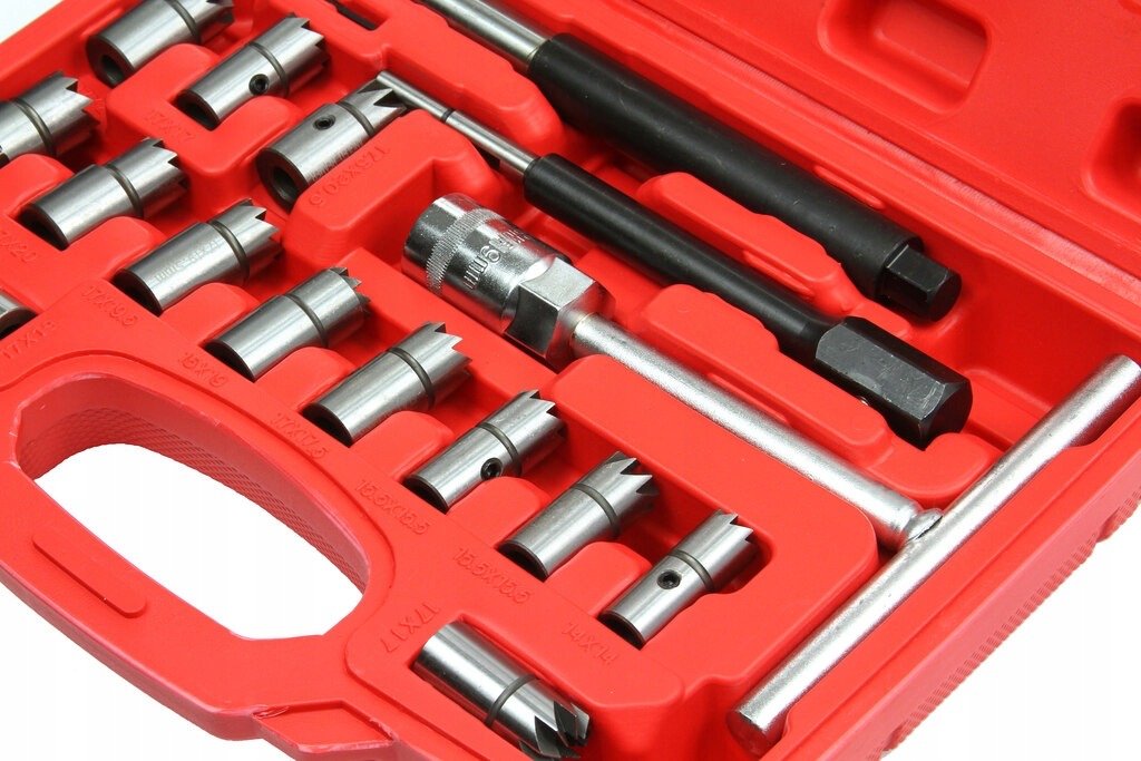 Предлага се с 13 различни фрези, които стават за повечето дизелови автомобили. T-образният ключ в комплекта е от хром ванадий.