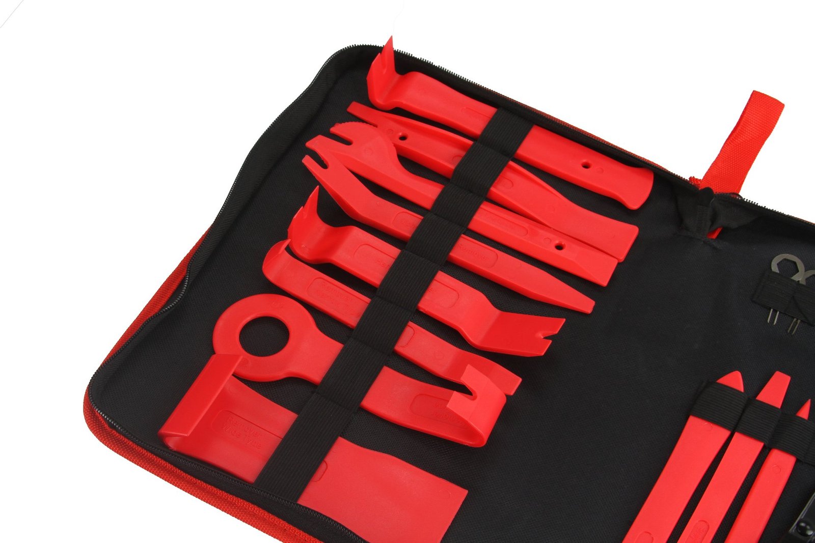 • 11 инструмента за разглобяване на пластмаса, подсилени със стъклени влакна, с шлицови, прави и ъглови конструкции, за демонтиране на декоративни ленти, огледални стъкла, капаци и панели в интериора и екстериора на купето