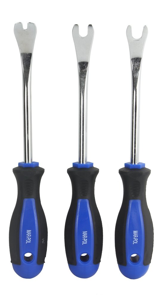 Лостове за скоби за тапицерия за лесно отстраняване на щифтове за тапицерия, вътрешни капаци и щифтове за закрепване. Специалната форма на върховете предотвратява всякакви повреди. Грайферите са с гумени дръжки.