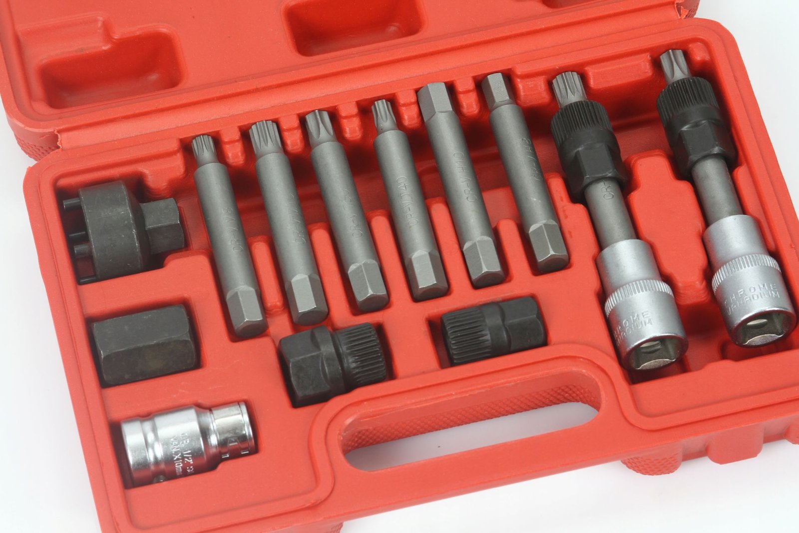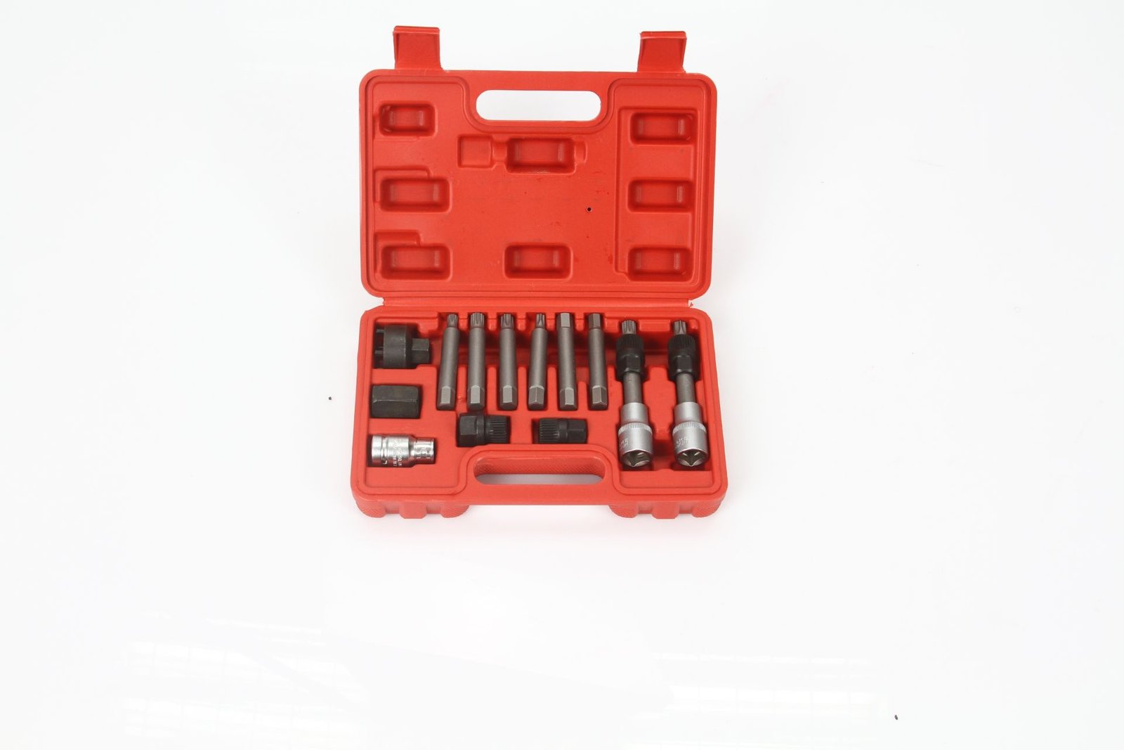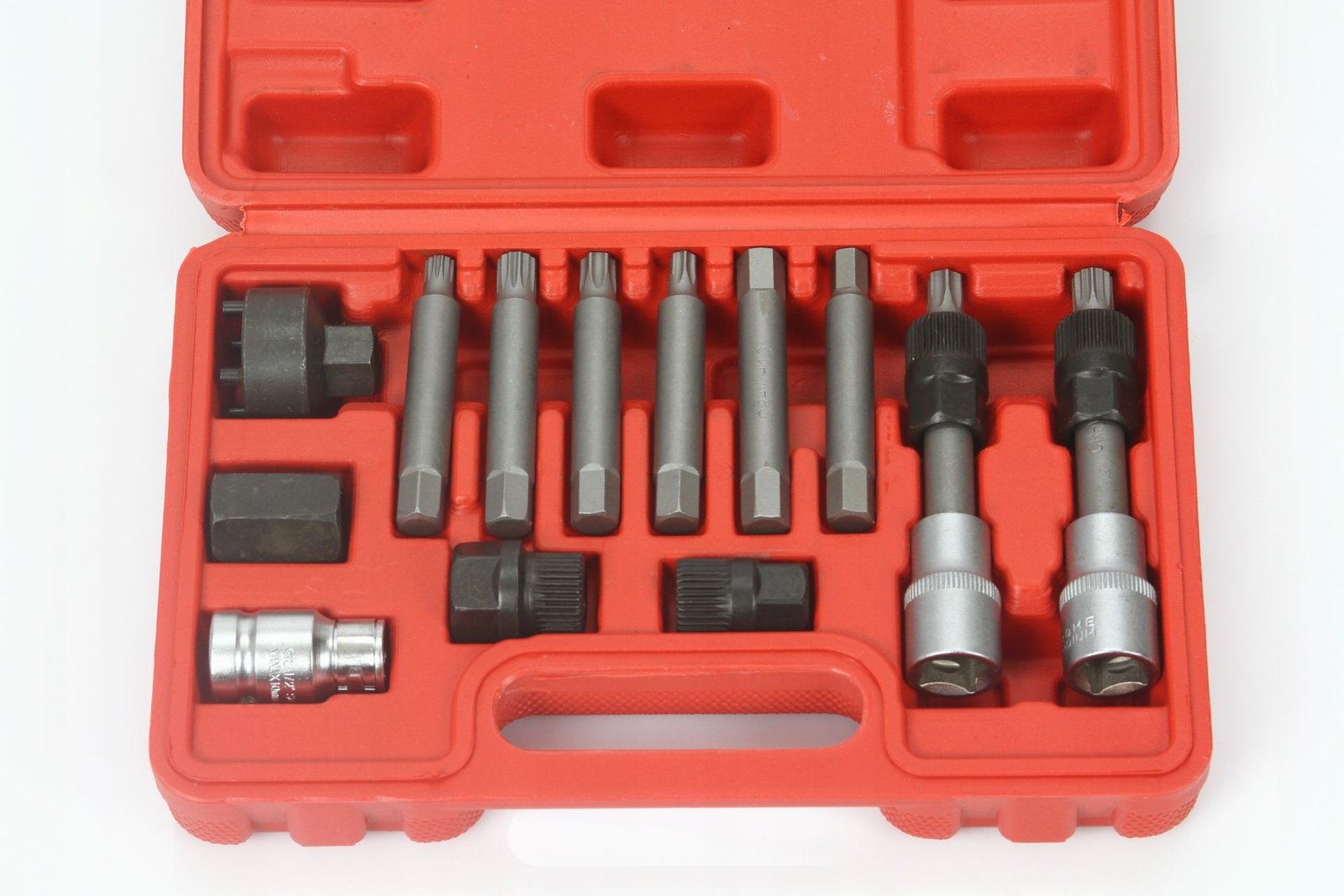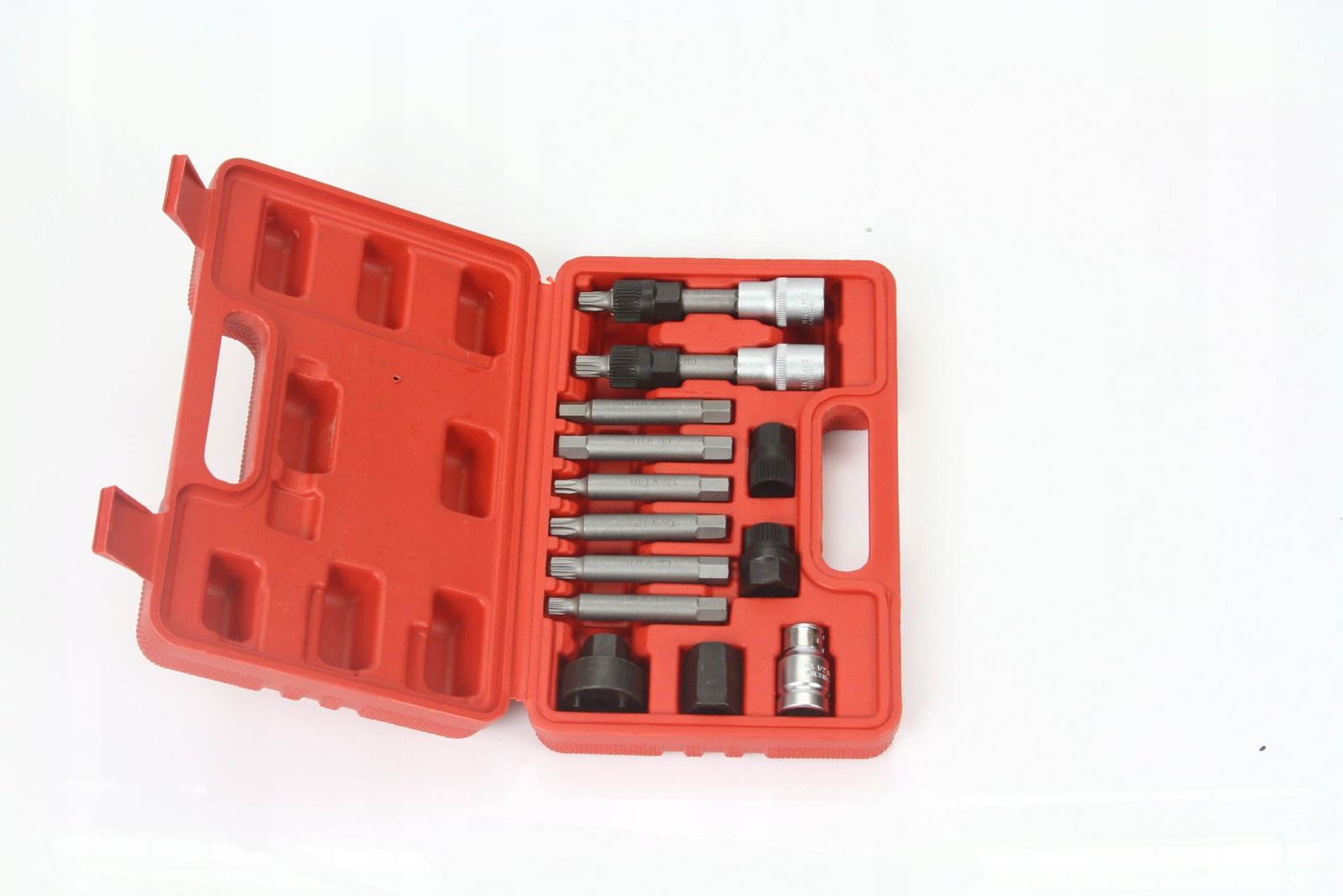 Комплект за демонтаж на алтернатор е универсален. Необходимостта от подобен комплект идва, когато трябва да демонтирате или монтирате ремъчни шайби на алтернатора/генератора на превозното ви средство или да го демонтирате за рециклиране. Съдържа 13 броя различни по вид и приложение накрайници. Заключва алтернатора, позволявайки централния болт държащ ролката да бъде развит. Комплектът служи и за монтаж и демонтаж на шайби. Намира приложение при повечето марки превозни средства като Mercedes, BMW, Renault, Ford, VW, Audi, SEAT, SKODA и много други.