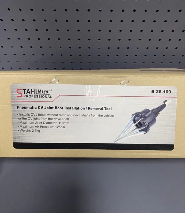Използва се за монтиране на еластични маншони на шарнири без премахване на задвижващите валове от автомобила или карета от задвижващия вал. Използва се с въздушен компресор. Подходящ за гумени маншони. Инстументът не е подходящ за PVC маншони.