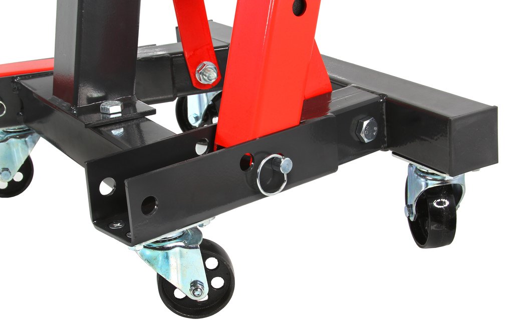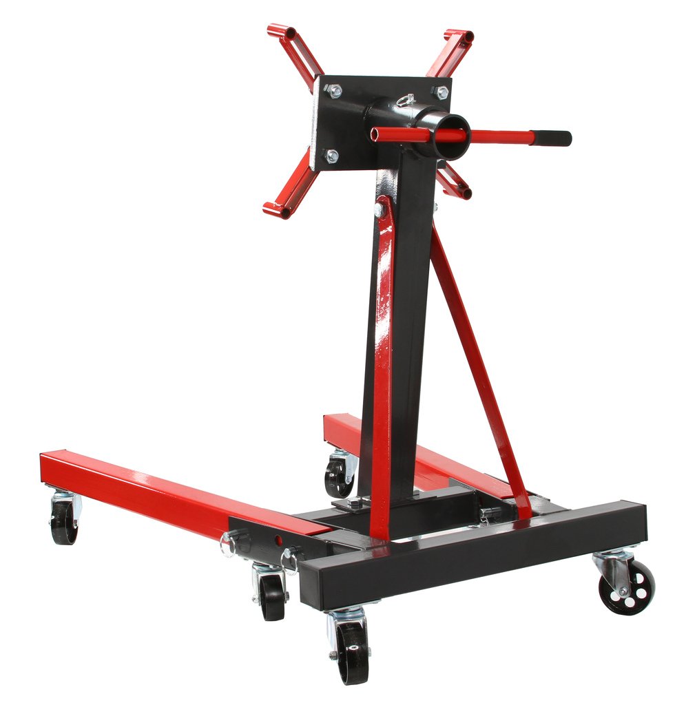 - Тази мобилна стойка за двигател 900 кг е незаменима в сервиза за работа с двигателя. Има четири подвижни клещи, фиксирани върху плочата, която се върти на 360 градуса.