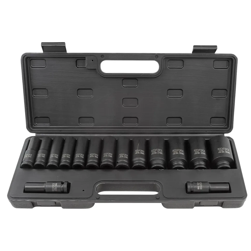 КОМПЕКТ ДЪЛБОКИ УДАРНИ ВЛОЖКИ 12-СТЕННИ 1/2″ (10 – 36 мм) 15 ЧАСТИ ROCKFORCE