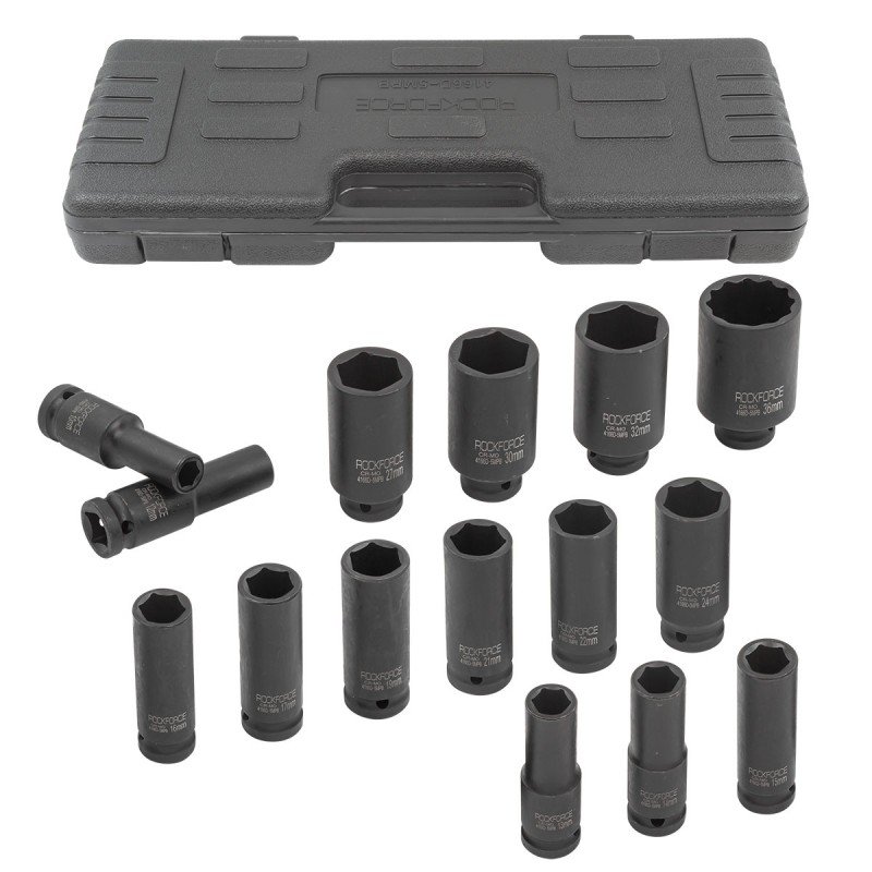КОМПЛЕКТ ДЪЛБОКИ УДАРНИ ВЛОЖКИ 12-СТЕННИ 1/2″ (10 – 36 мм) 15 ЧАСТИ JCB