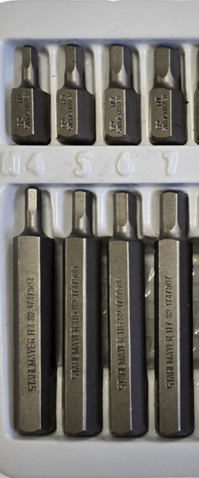 - Hex битове: H4, H5, H6, H7, H8, H10, H12 (30 мм)