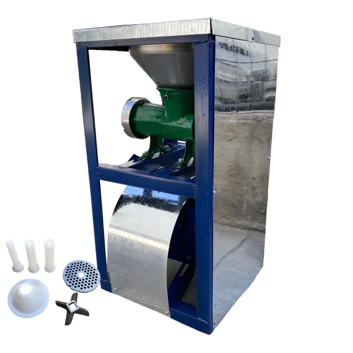 Чугунена румънска месомелачка №32 с електромотор,  стойка, метална фуния  и плот