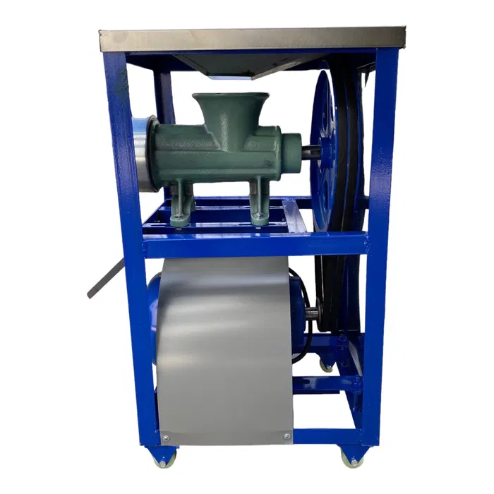 Професионална чугунена румънска месомелачка №32 с електромотор, двоен ремък и плот от неръждавейка