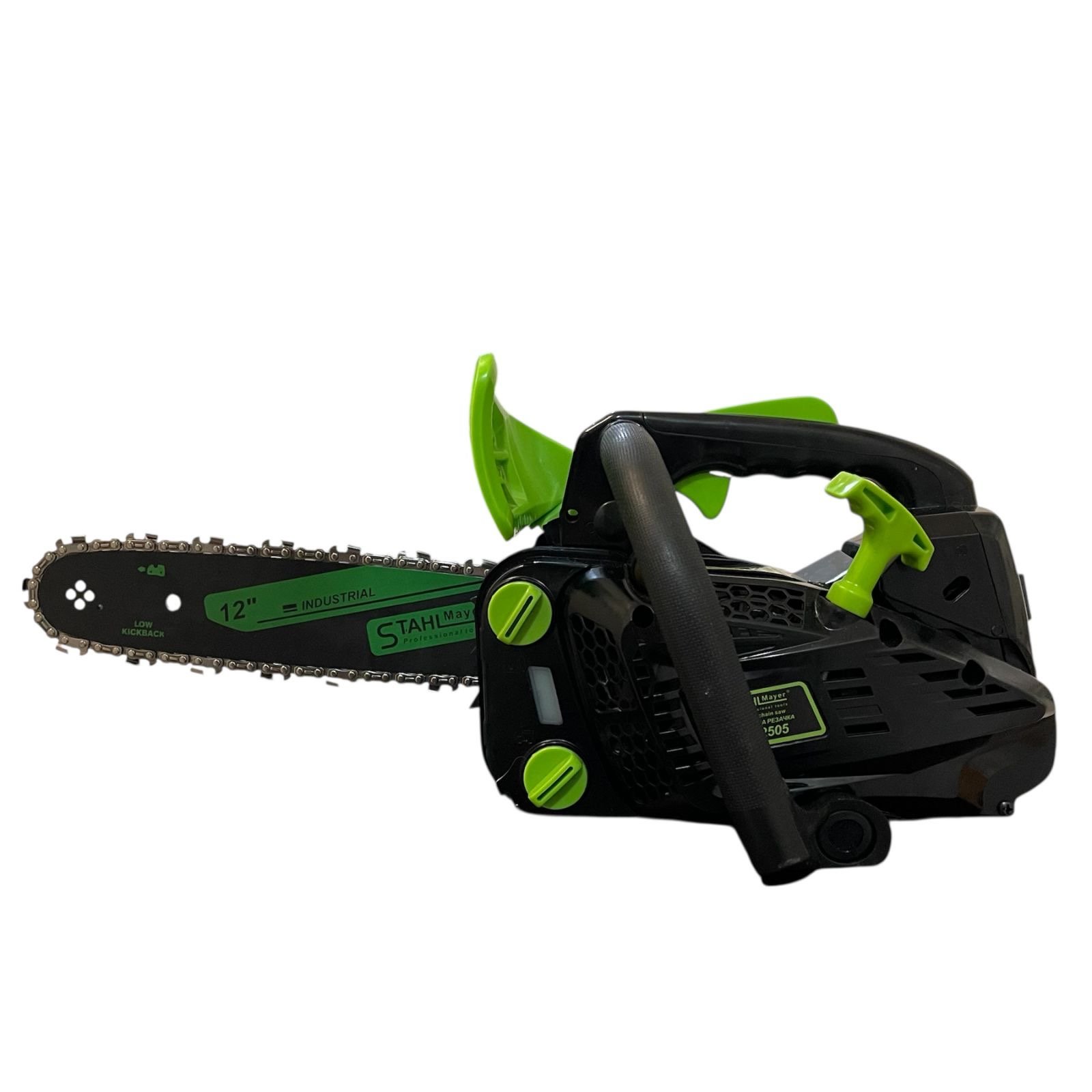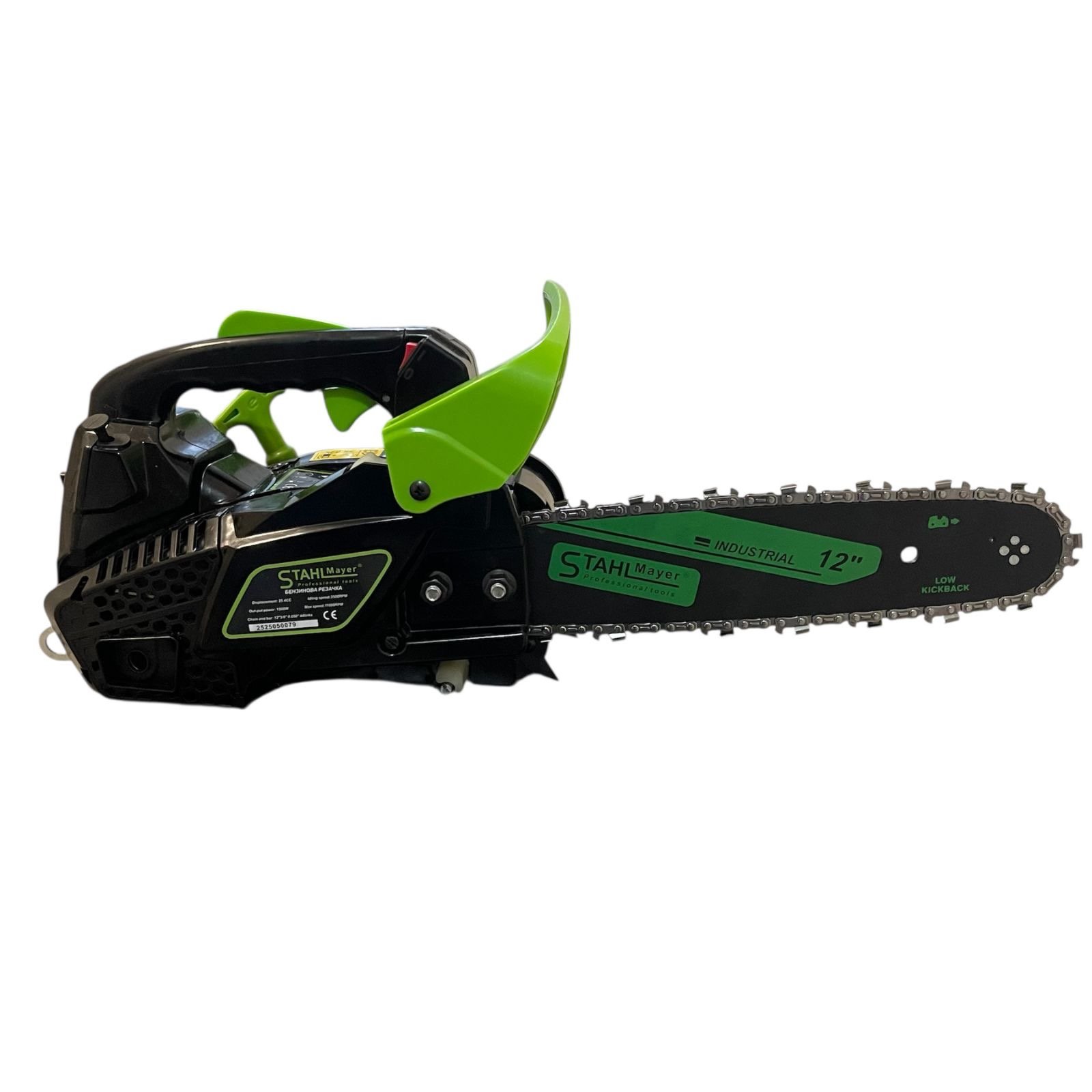 🔹 Качествена шина и верига: оборудвани със специална STAHLMAYER шина и верига с ниска склонност към откат — за гладко и ефективно рязане. (!)