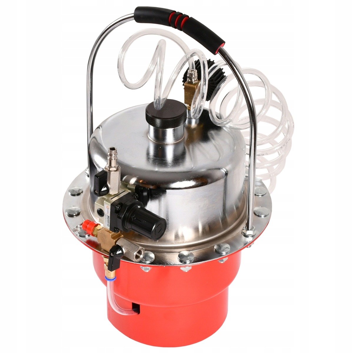 - Съд за използвана спирачна течност с маркуч и гумен адаптер