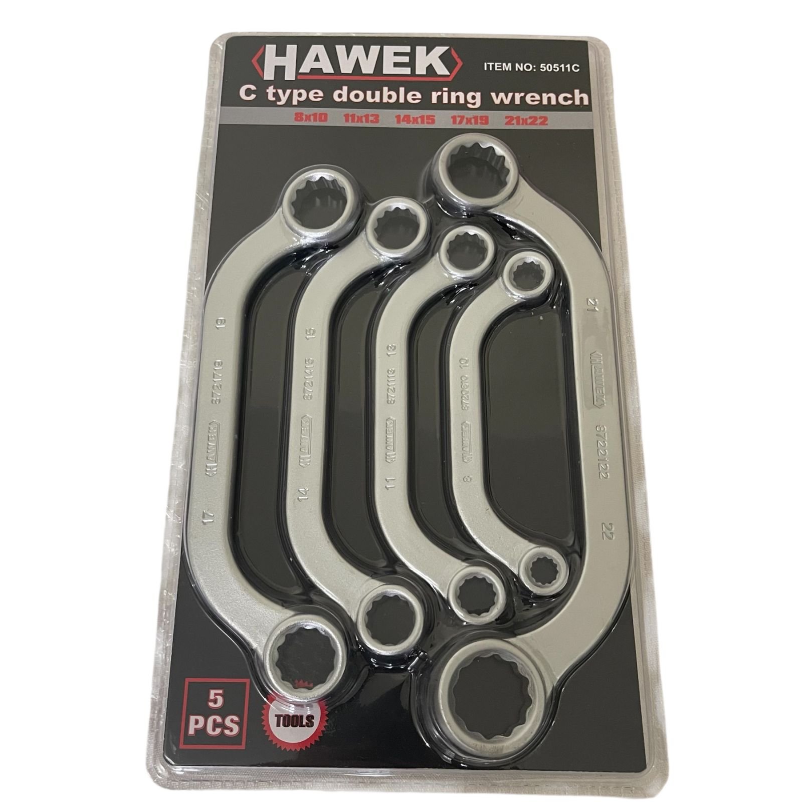 ЗВЕЗДОГАЕЧНИ C–ОБРАЗНИ КЛЮЧОВЕ 8 –22 ММ 5 ЧАСТИ HAWEK