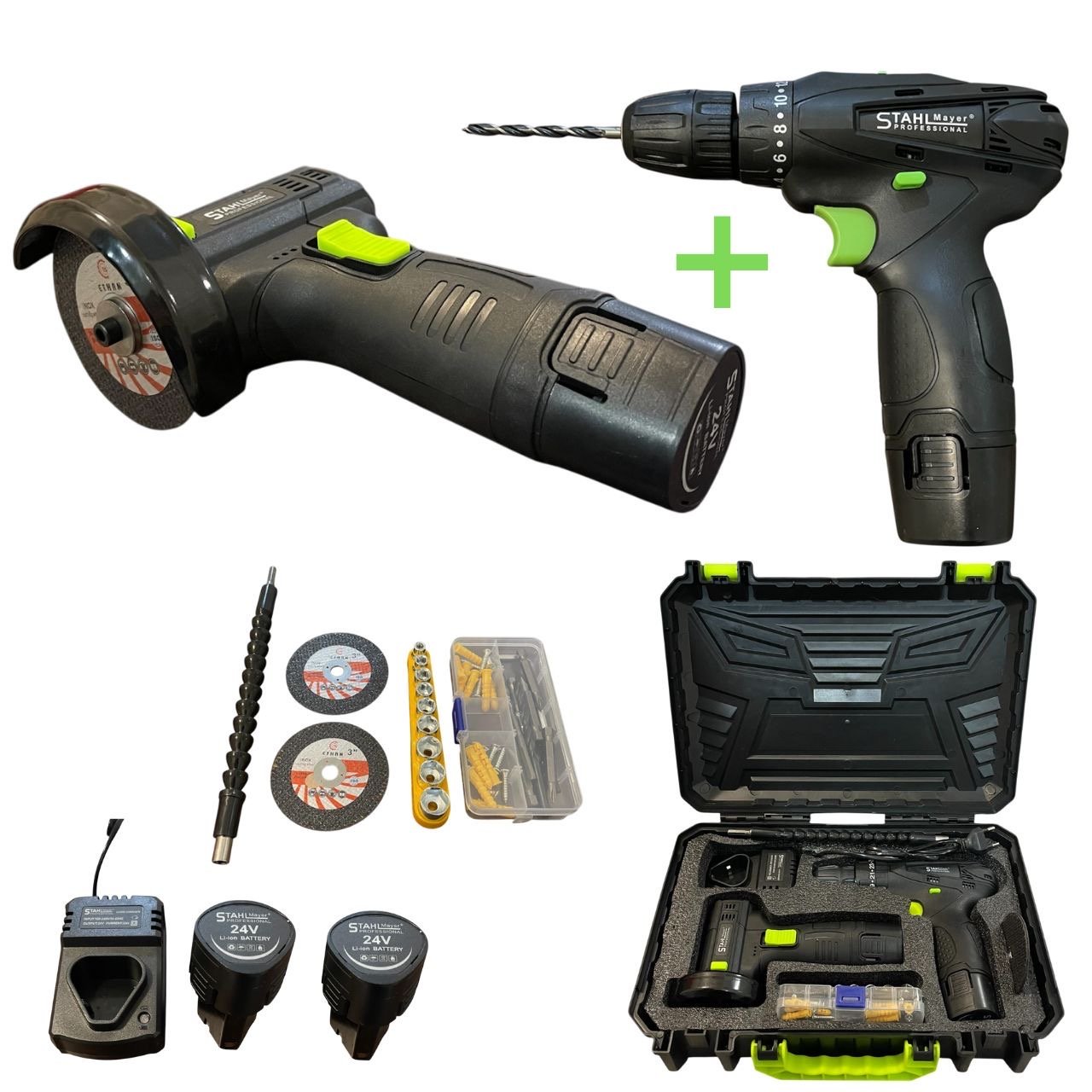 Комплект акумулаторен ударен винтоверт + мини ъглошлайф STAHLMAYER 24V