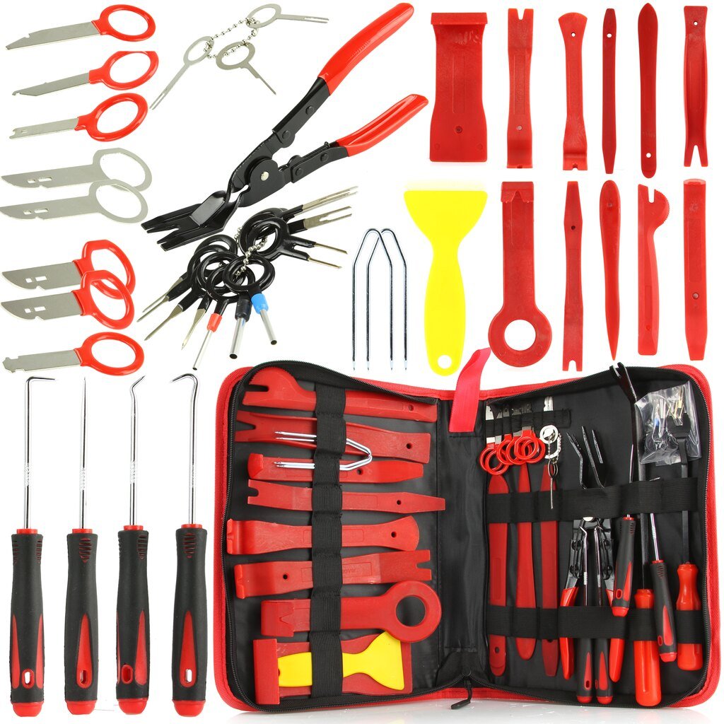 ПЪЛEН КОМПЛЕКТ ИНСТРУМЕНТИ ЗА ДЕМОНТАЖ НА ЕЛЕМЕНТИ ОТ ТАПИЦЕРИЯ И ЩИПКИ 43 ЧАСТИ MAR-POL