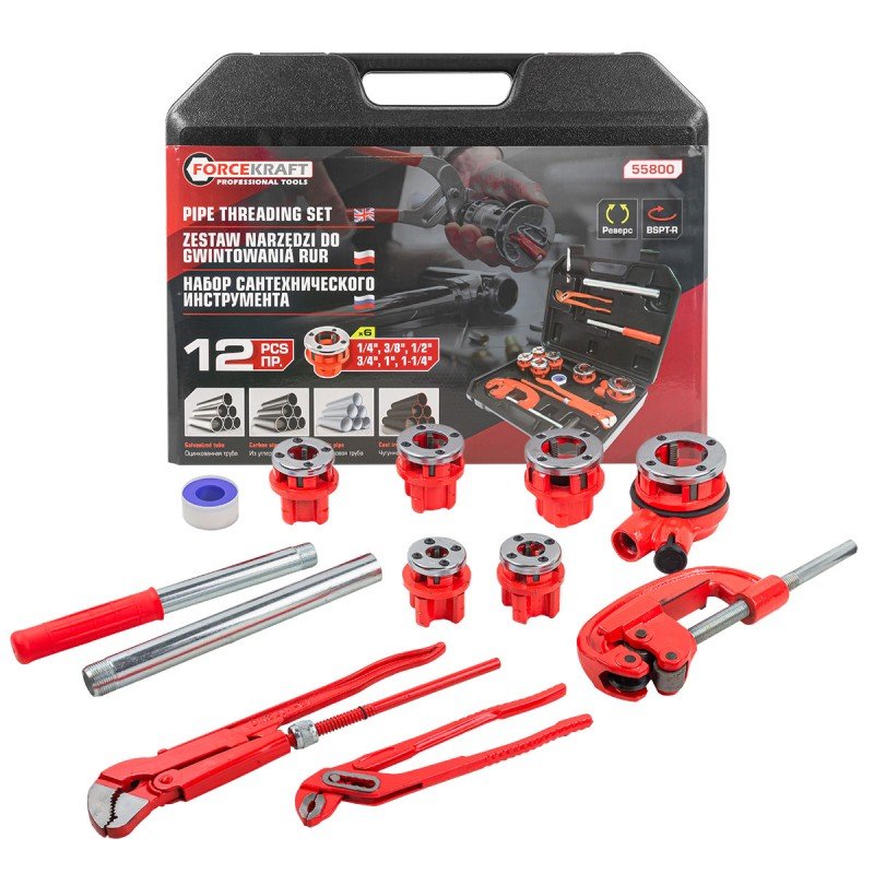 КОМПЛЕКТ ВИНТОРЕЗКА С 6 ГЛАВИ И ИНСТРУМЕНТИ 12 ЧАСТИ FORCEKRAFT
